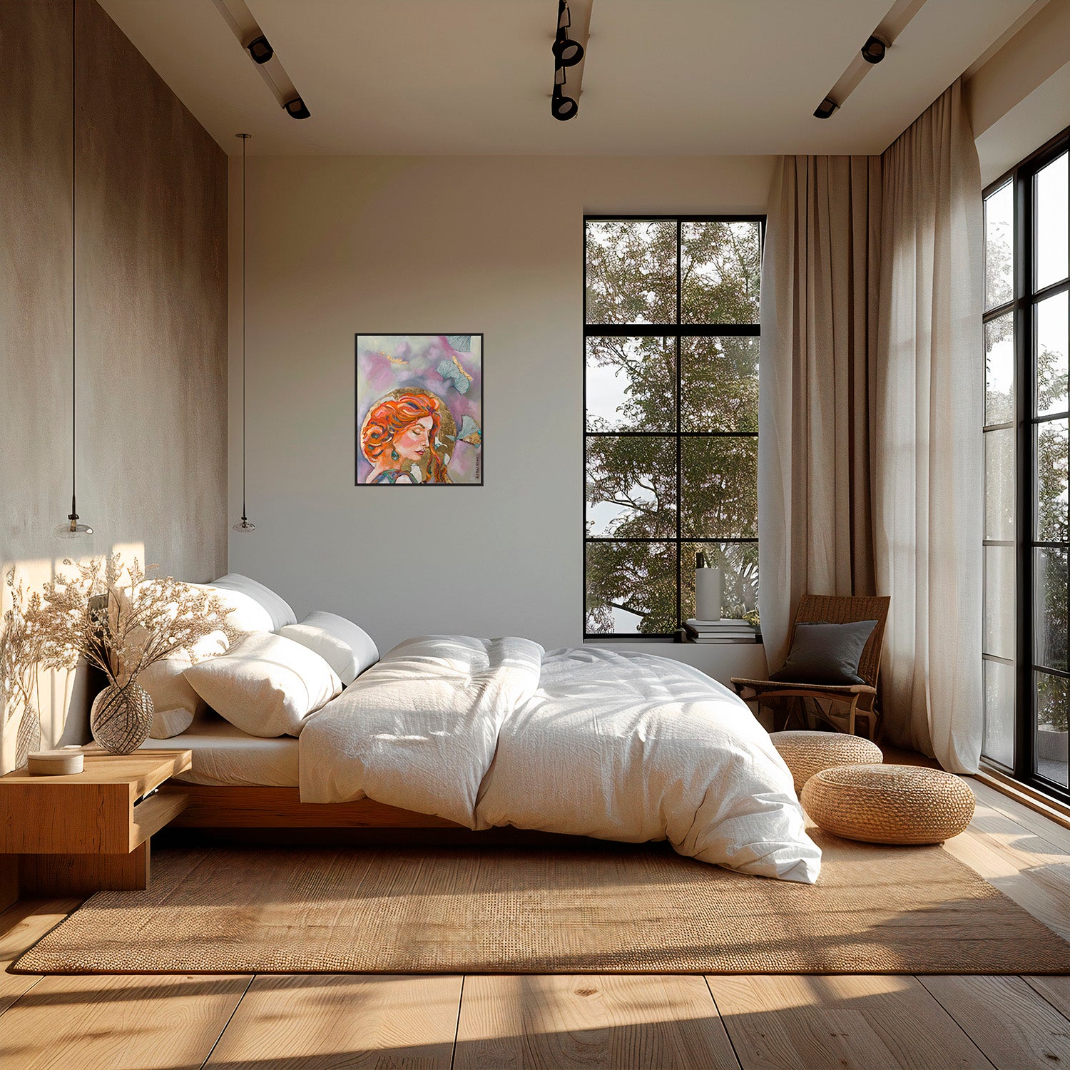 Apportez une touche de douceur et de volupté à votre intérieur avec le tableau Bella. Cette oeuvre originale et unique présente une femme rousse dans un portrait empreint de tendresse et de grâce. Sa technique de peinture à l'huile, avec collage de dorures et de papier peint, lui donne un effet saisissant. Format 60x50cm, encadré dans une caisse américaine anthracite pour une touche moderne.