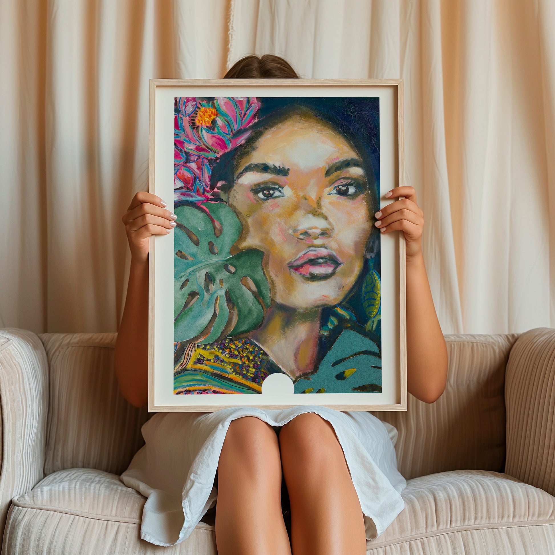 Profitez de cette reproduction de l'oeuvre intitulée "Derrière la feuille 2024" avec notre tirage d'art sur papier musée. Inspirée par le désir de dissimuler son intégrité, cette oeuvre contemporaine évoque une femme dans sa forêt avec des couleurs dominantes de vert, noir-jaune et rose. En provenance de France, cette impression saura ajouter une touche unique et originale à votre décoration.