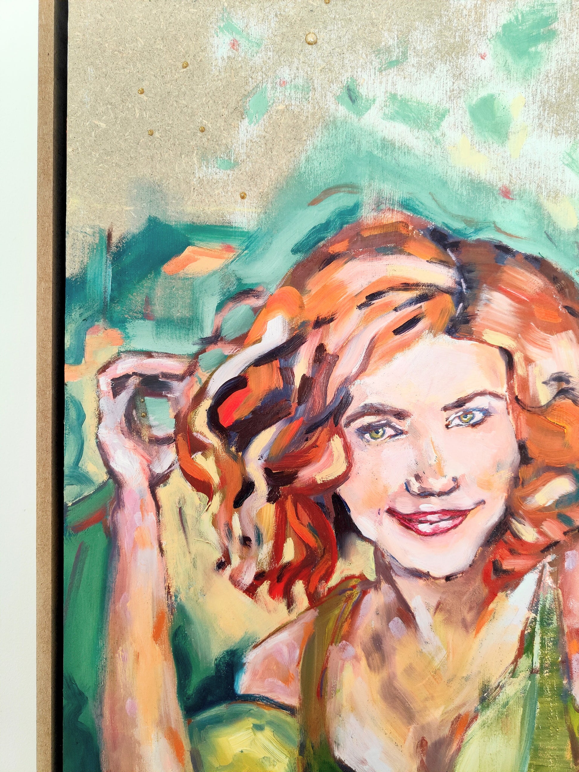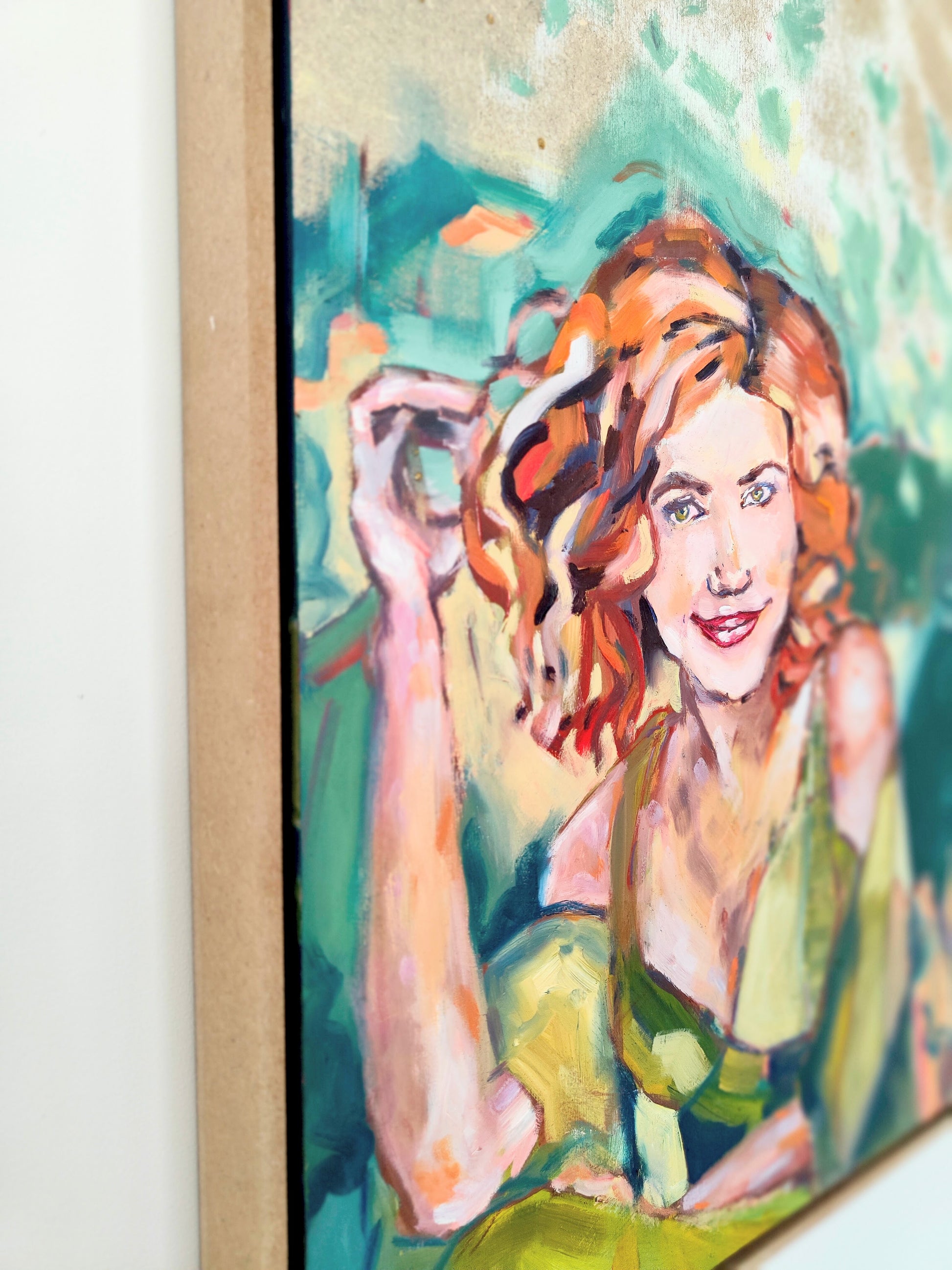 Découvrez "Evanescence 70x60", une œuvre unique qui capture l’essence d’une femme souriante, face au changement imminent. Peinte à l’huile sur une plaque en bois (MDF) de 10 mm avec châssis bois, cette création audacieuse mêle des teintes vibrantes de vert, orange et brun. Son cadre en caisse américaine bois brut souligne son caractère authentique et contemporain. Un tableau original qui invite à embrasser la transformation avec confiance et énergie.