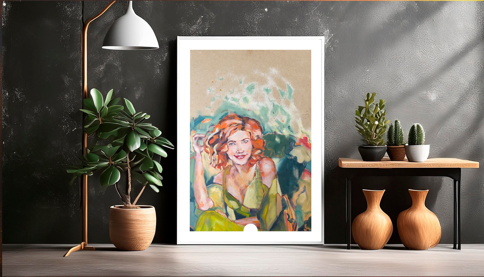 Découvrez "Evanescence", un tirage d'art qualité musée qui capture l'essence d'une femme souriante, tournée vers l'avenir et prête à embrasser le changement. Les teintes vibrantes de vert, orange et brun insufflent une énergie audacieuse à cette œuvre de 2025, parfaite pour dynamiser votre espace avec une touche de courage et de renouveau.