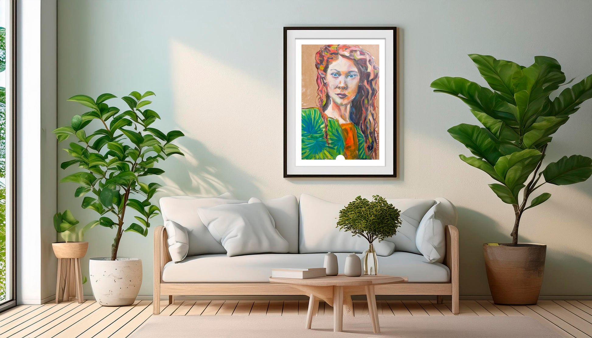 Ce tirage d'art qualité musée, intitulé "Je me dévoile," s'inspire d'un portrait de Klimtxmucha mêlé aux tempêtes intérieures de l'artiste. Réalisé sur bois brut, il révèle une peinture authentique, sans filtres ni voiles. Les couleurs dominantes — vert, orange et turquoise — donnent vie à cette œuvre unique de 2025, invitant à un regard profond et sincère.