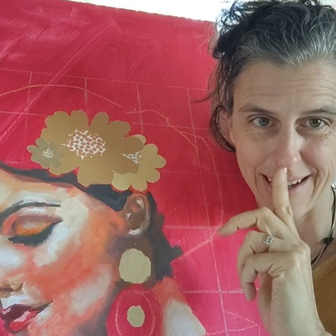 Vous êtes en train de peindre une œuvre chez vous — le portrait de votre chien, un arbre dans votre jardin, votre maison, ou encore un visage dans le cadre de mon stage en ligne… à l’acrylique ou à la peinture à l’huile.